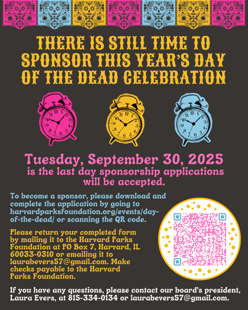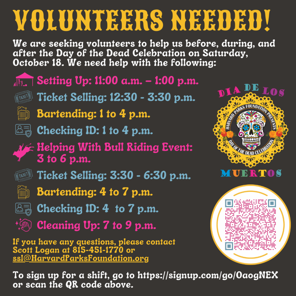 If you have any questions, please contact Scott Logan at 815-451-1770 or ssl@HarvardParksFoundation.org.
